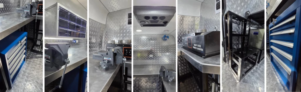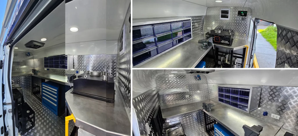La unidad fue configurada como una base operativa móvil, equipada para realizar diagnóstico en terreno, soporte a herramientas de apriete y preparación técnica antes de su uso en procesos críticos.