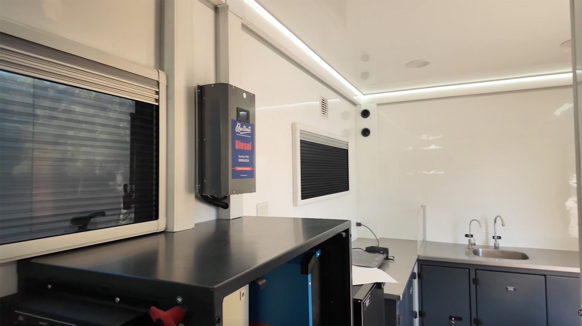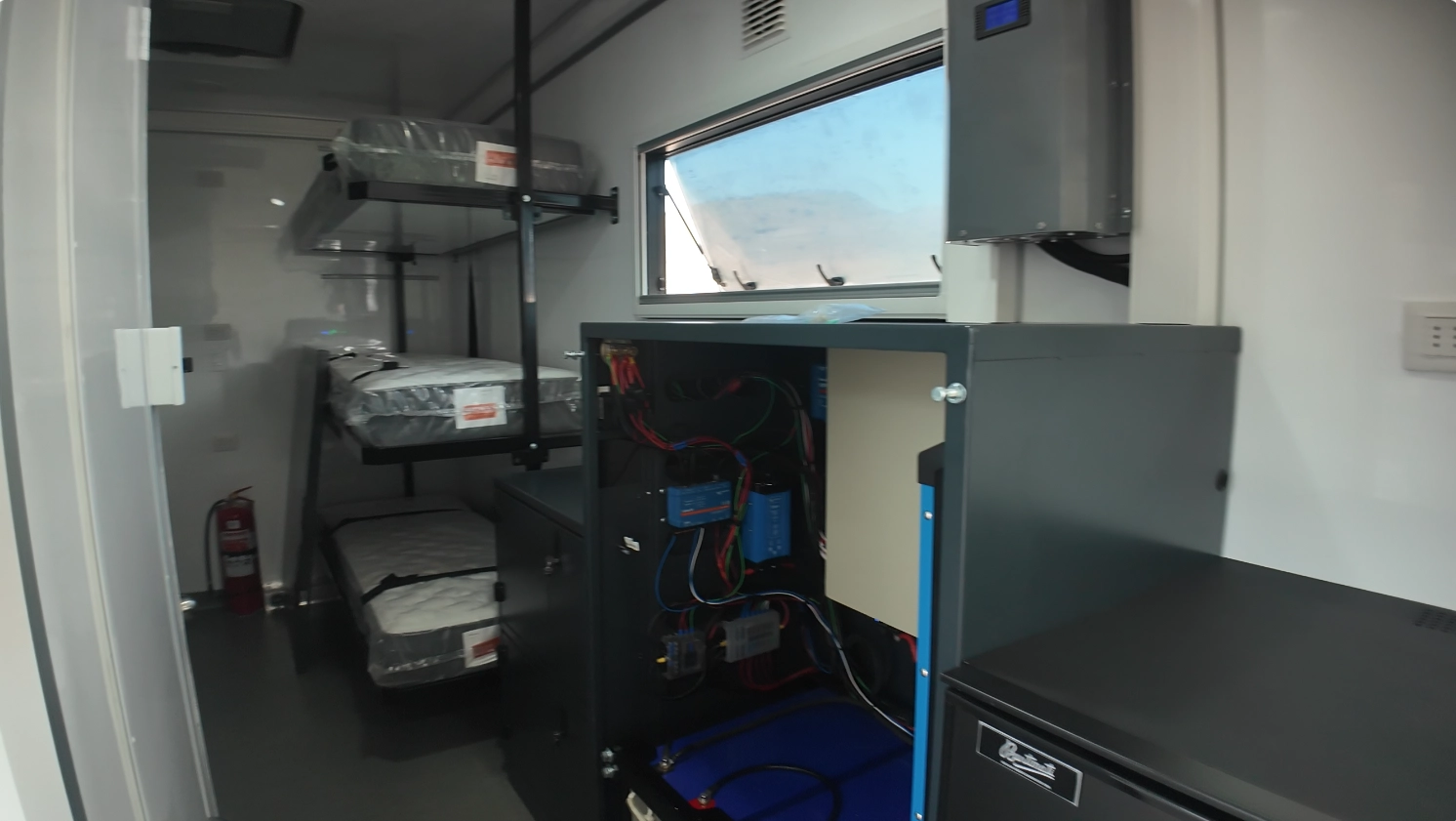 - Agua potable 500 L, aguas grises 400 L, filtrado UV, sistema sanitario.