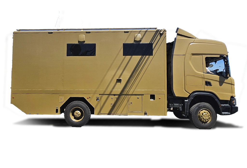 - Shelter reforzado, aislación térmica/acústica, apto terreno extremo.