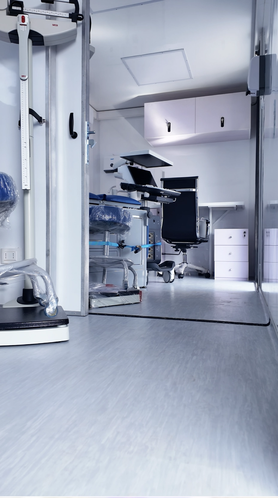 - Configuración de mobiliario clínico gineco-obstétrico sobre chasis camión.