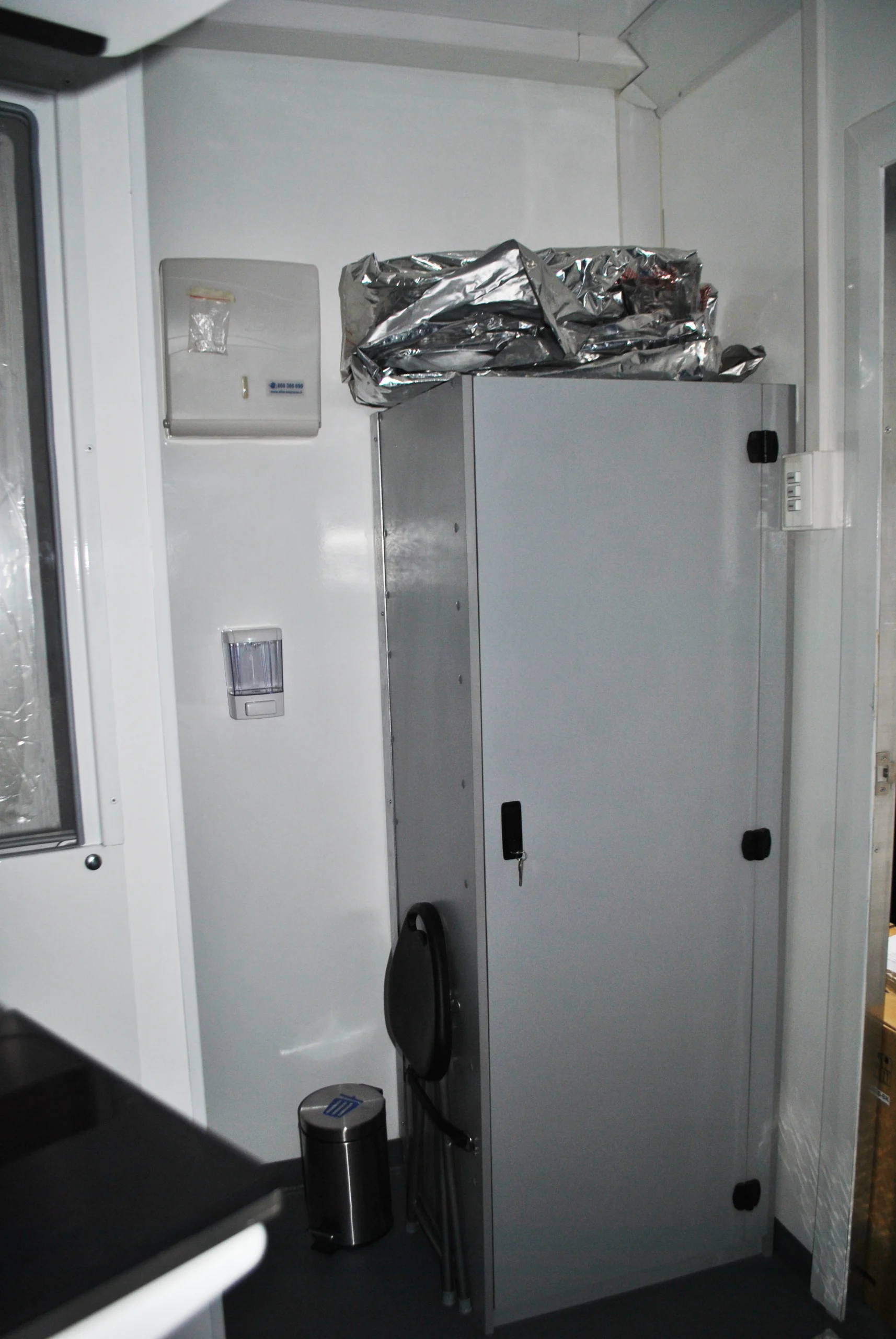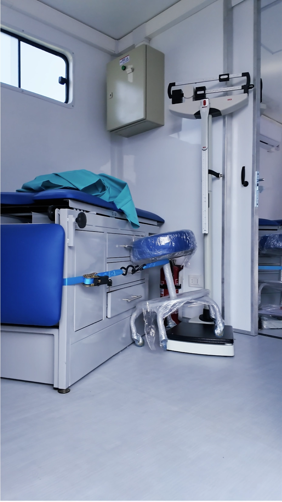 - Configuración de mobiliario clínico gineco-obstétrico sobre chasis camión.