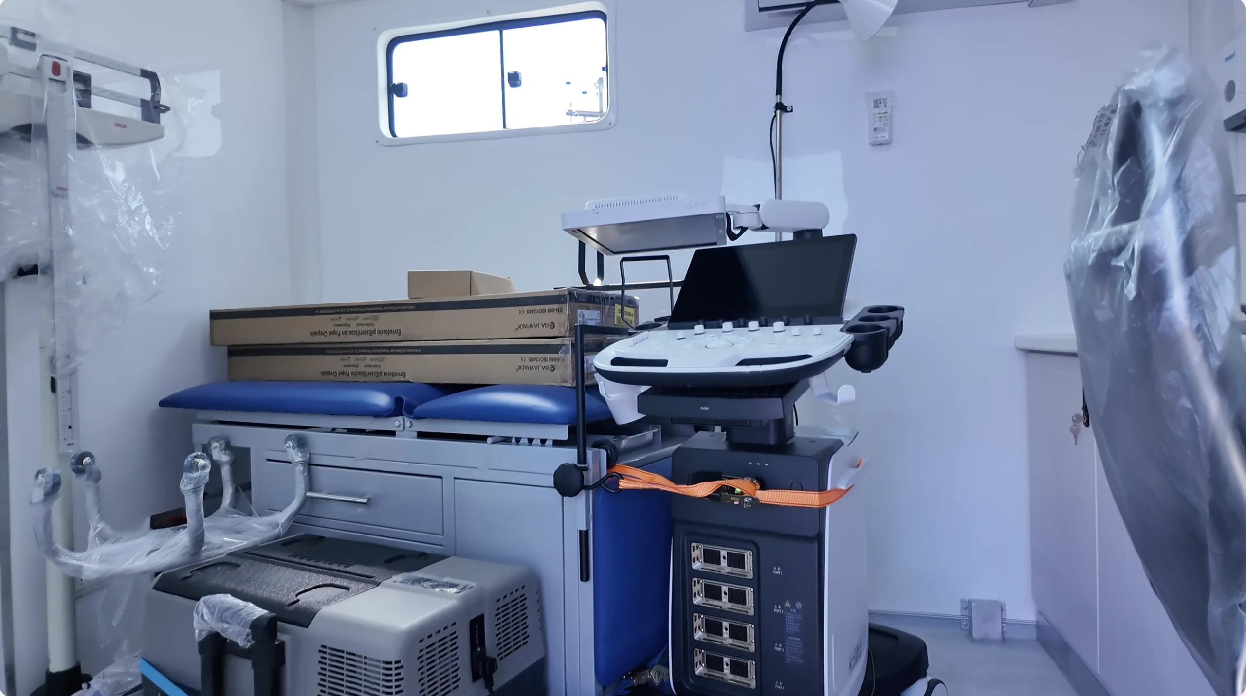 - Configuración de mobiliario clínico gineco-obstétrico sobre chasis furgón.